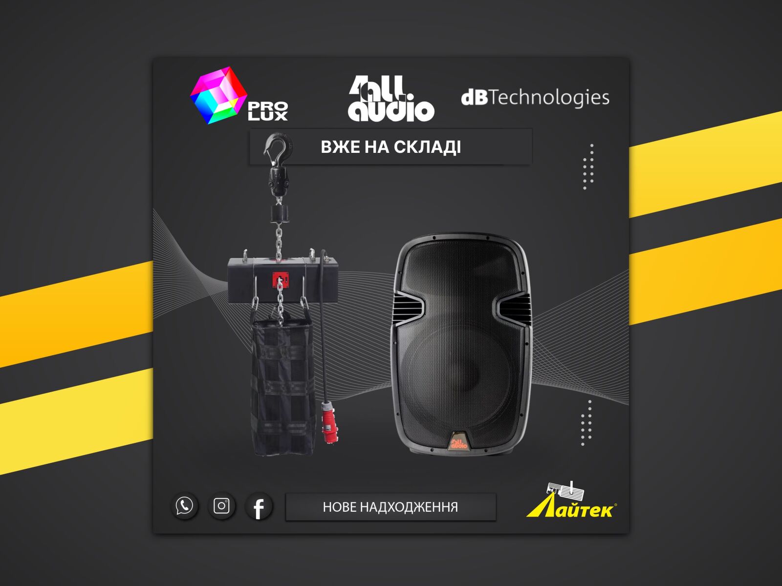 Поповнення складу - в наявності професійне обладнання PRO LUX, 4ALL AUDIO та dB Technologies.
